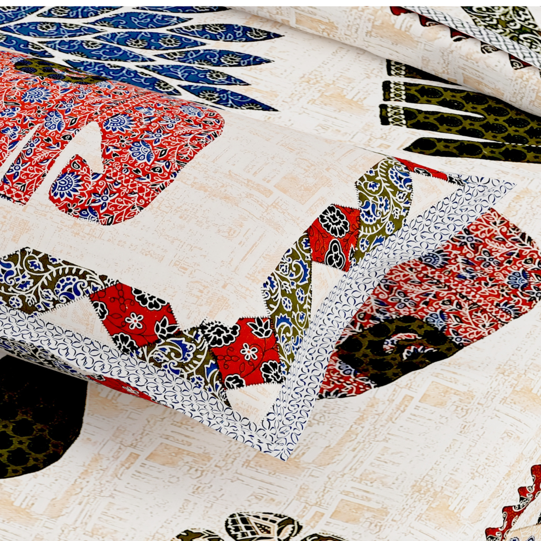 Add a touch of heritage to your home with the Royal Elephant Heritage Bedsheet. Inspired by traditional Indian artistry, this bedsheet combines cultural elegance with everyday comfort, making it a true masterpiece for your bedroom.